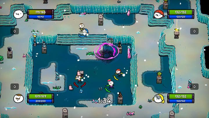 《魔犬大骚乱》是一款充满怪异风格的单机合作角色扮演动作游戏!全盘相信人们说的话,就能变得无敌强大!寻找各种疯狂的角色加入队伍,还能和巨大的草莓蛋糕说话! 蛋糕巫师死去之后,他强大的魔法狗「啊啊」失控了!你能够拯救世界吗?你能够拯救那只狗吗? 快来扮演拥有培根力量的烘焙师「伙计」,勇闯危险的杂菜汤山!或是扮演势不可挡的水管工「小伙计」迎战愤怒的火人!你也可以扮演糖果治疗巫师「废物瓦」来为雷射火山解冻,或者扮演影响力大师「都朵拉」尽情展现你